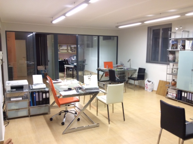 Στον χώρο εργασίας εχουν τοποθετηθεί δυο καναπέδες τύπου le corbusier και αντίστοιχο coffee table. Υπάρχουν δυο σταθμοί εργασίας πλήρως εξοπλισμένοι με έπιπλα της εταιρείας balton κατασκευασμένα απο γυαλί και inox.