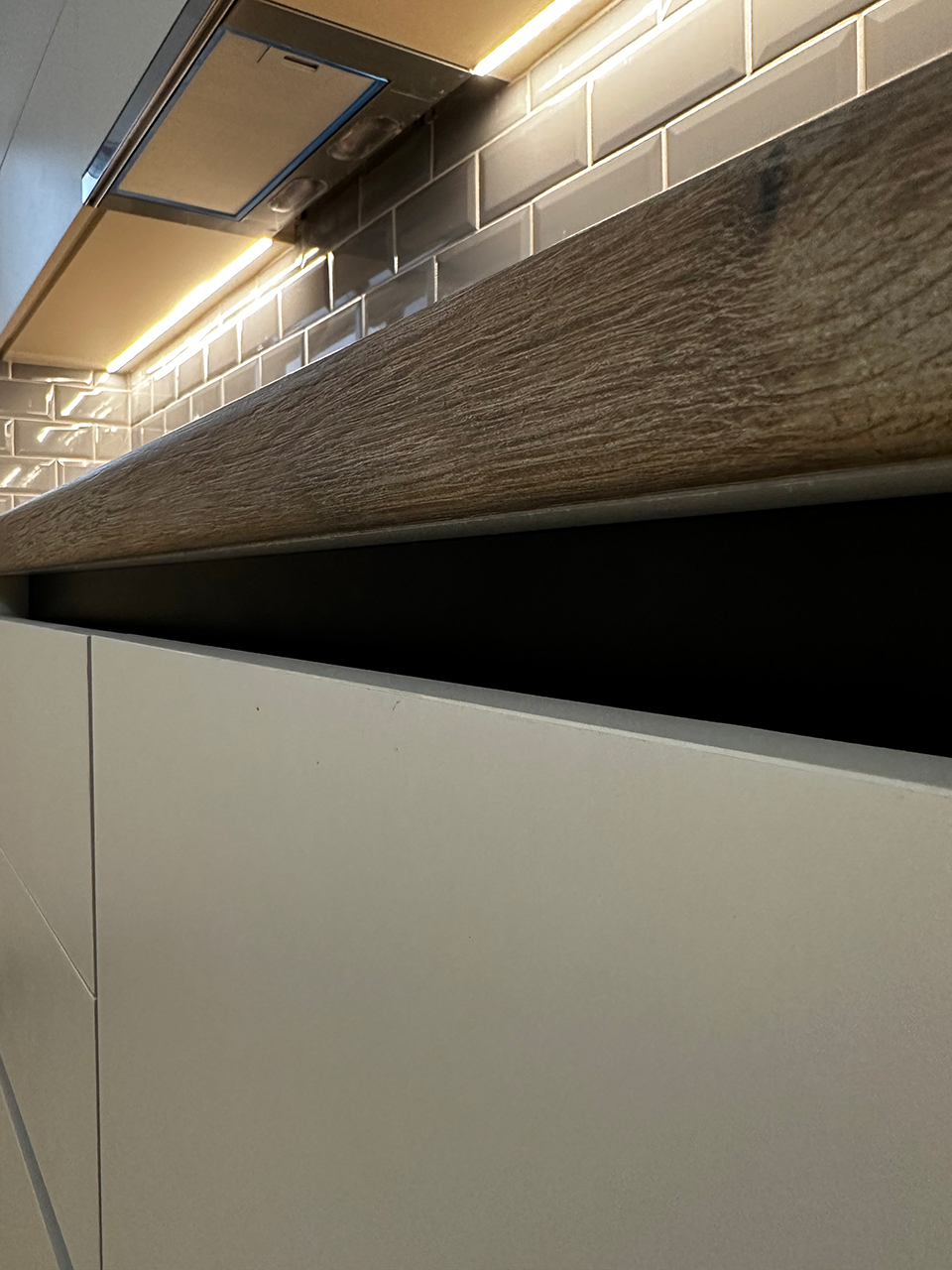 - Σχεδιασμός και κατασκευή νέας σύγχρονης κουζίνας ντουλαπιών και πάγκου.